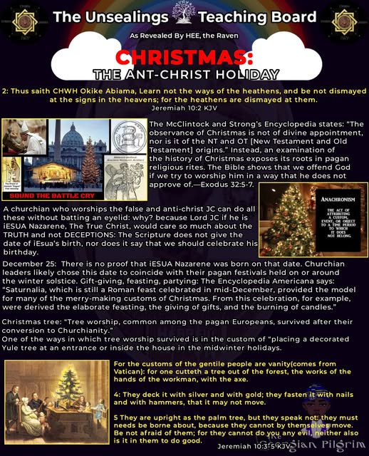 “Christmas and all other European holi-days(not holy-days) is the nonsense African-Americans and Africans were sold into. The worst being that even the elect Hebrews Hibos Ibos Igbos NdiGboo: Ancient People, head of all black nations, too have been deceived into …